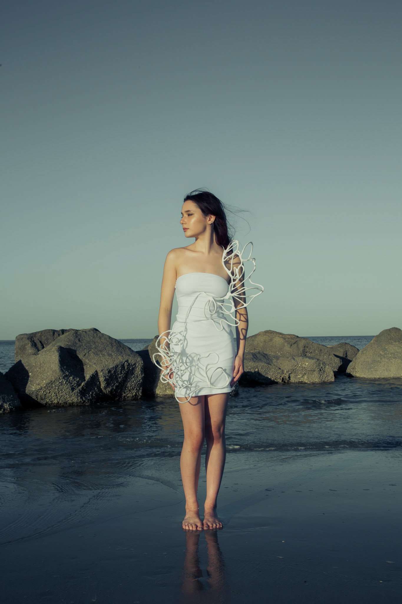 Rooted in the Buddhist concept of anicca, this project explores the beauty of transience and transformation. Created in under a week for my Intro to Fashion class, the wearable sculpture—crafted from clay and wire—embodies the tension between fragility and resilience. Inspired by nature’s cycles of decay and renewal, the piece reflects the idea that nothing is fixed, and through impermanence, we find liberation.